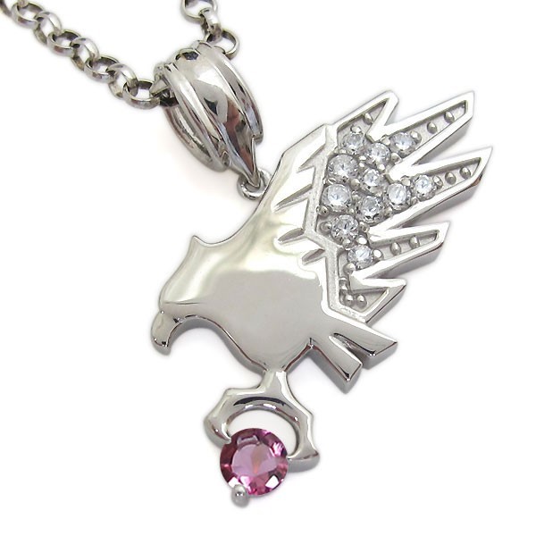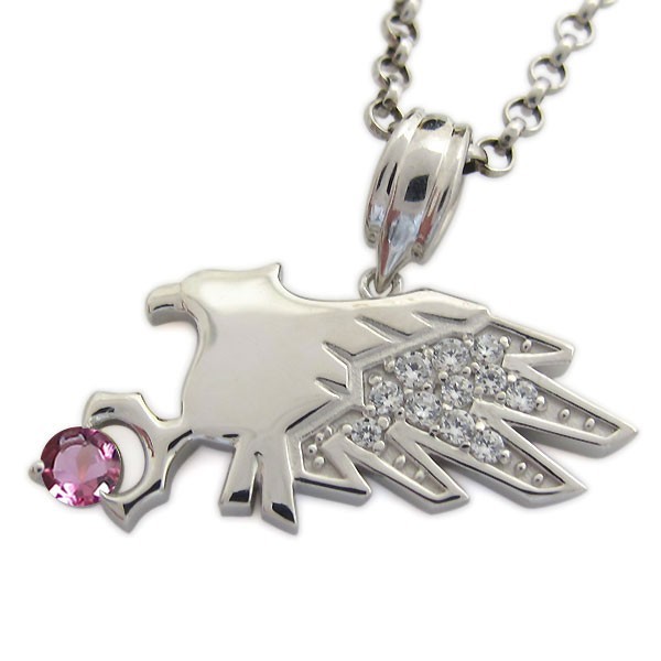 メンズ シルバー ネックレス イーグル 鷲 ホーク 鷹 天然石 ピンクトルマリン