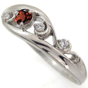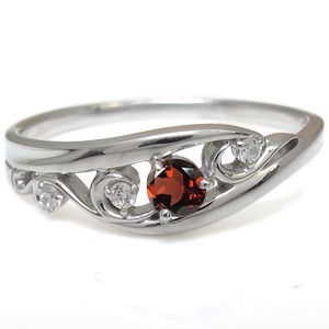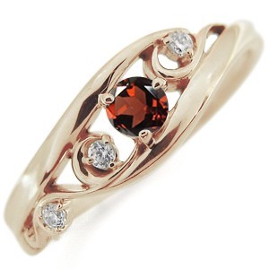 ■石名:主石 ガーネット(約 3.0mm/天然石使用)脇石 ダイヤモンド(3石合計で約 0.03ct/天然石使用)