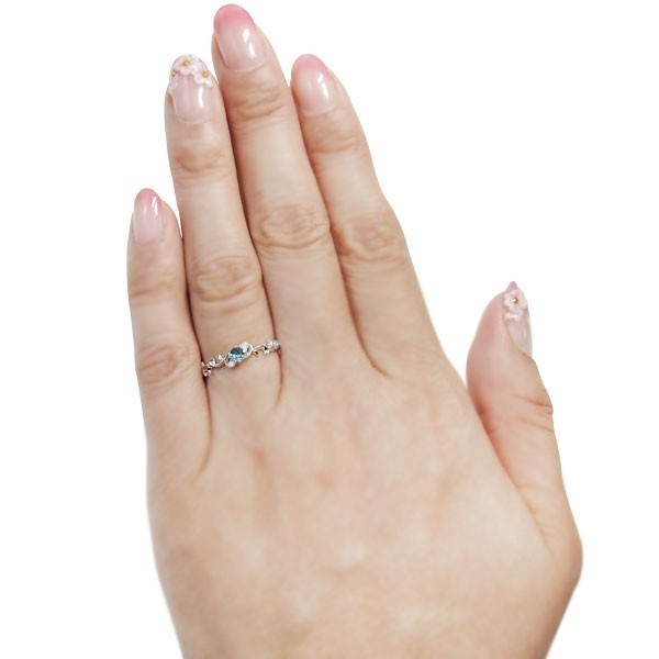 ■石名:主石 ブルートパーズ(約 3.0mm/天然石使用)脇石 ダイヤモンド(2石合計で約 0.02ct/天然石使用)