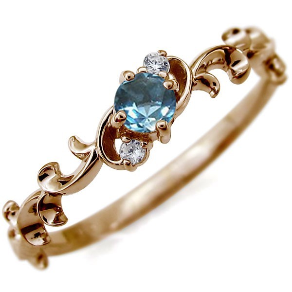 11月誕生石ブルートパーズを一粒使用した、アラベスクデザインの10金製リング(指輪)です。