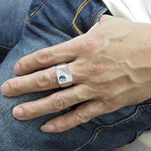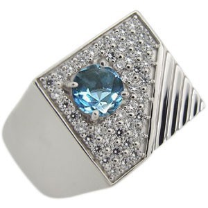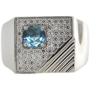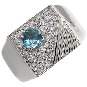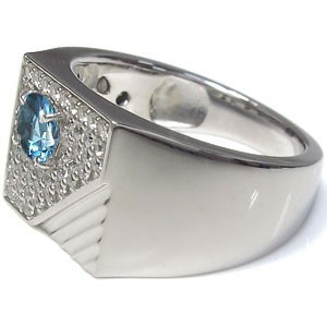 11月誕生石ブルートパーズを一粒と、ダイヤモンドを贅沢に使用した、プラチナ製印台メンズリング(指輪)です。