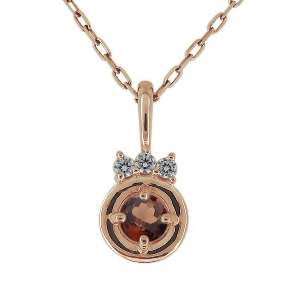 1月誕生石ガーネットを使用した18金製の、シンプルデザインレディースネックレス(ペンダント)です。