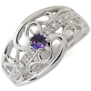 ■石名:主石 アメジスト(約 3.0mm/天然石使用)脇石 ダイヤモンド(10石合計で約 0.08ct/天然石使用)