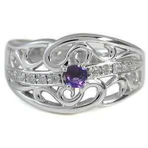 2月誕生石アメジストを一粒使用した、10金製の唐草デザインリング(指輪)です。