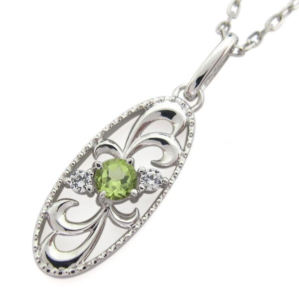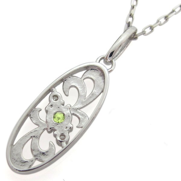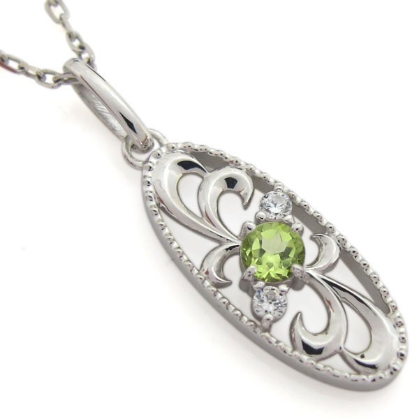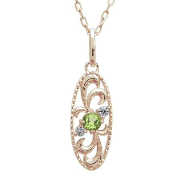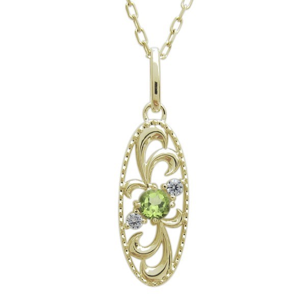 8月誕生石ペリドットを使用した10金製の、唐草(アラベスク)モチーフのネックレスペンダントです。