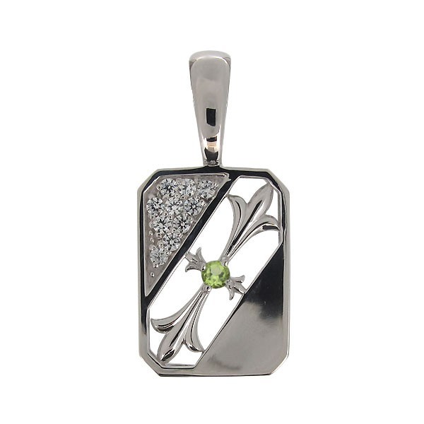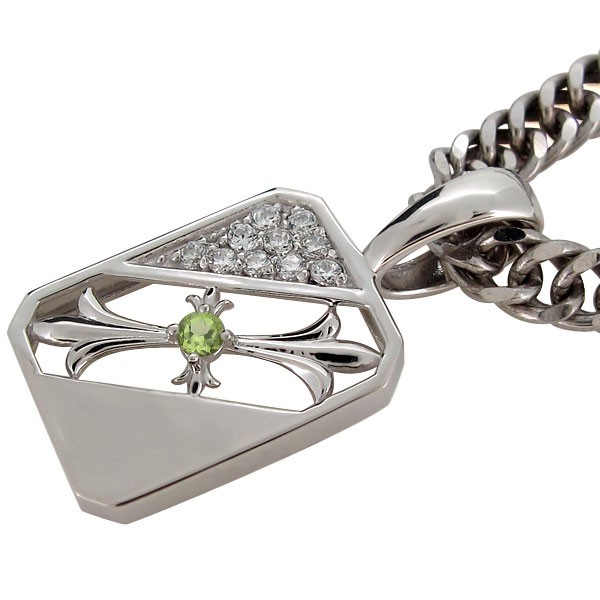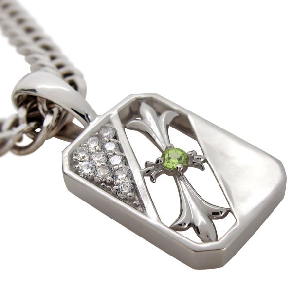8月誕生石ペリドットを使用したプラチナ製の、クロス(十字架)モチーフメンズペンダントヘッドです。