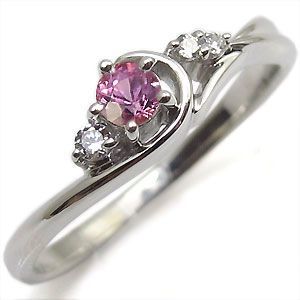 ■石名: 主石:ピンクサファイア(約 3.0mm/天然石使用)脇石:ダイアモンド(合計3石で約 0.04ct/天然石使用)
