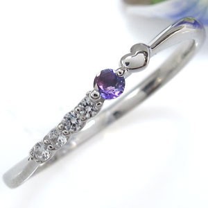 2月誕生石アメジストを使用した、プラチナ製のハートモチーフリング(指輪)です。