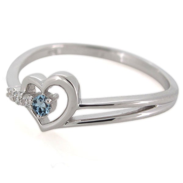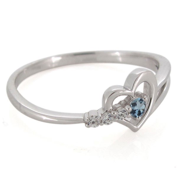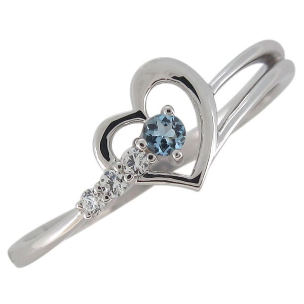 3月誕生石アクアマリンサンタマリアを使用したシルバー製の、ハートモチーフリング(指輪)です。