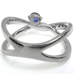 9月誕生石サファイアを使用した18金製のクロスモチーフV字デザインリング(指輪)です。