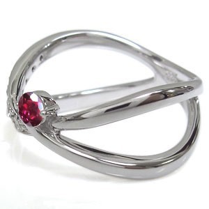 7月誕生石ルビーを使用したプラチナ製のクロスモチーフV字デザインリング(指輪)です。