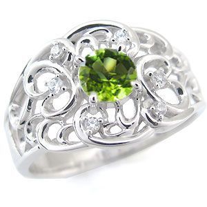 ■石名:主石 ペリドット(約 5.0mm/天然石使用)脇石 ダイヤモンド(6石合計で約 0.06ct/天然石使用)