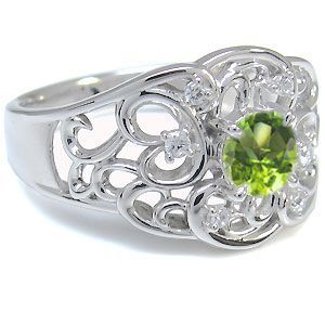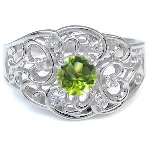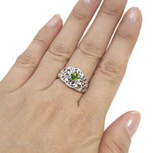 プラチナ ペリドット リング 一粒 唐草 指輪8月誕生石ペリドットを一粒使用した唐草デザインのプラチナ製リングです。