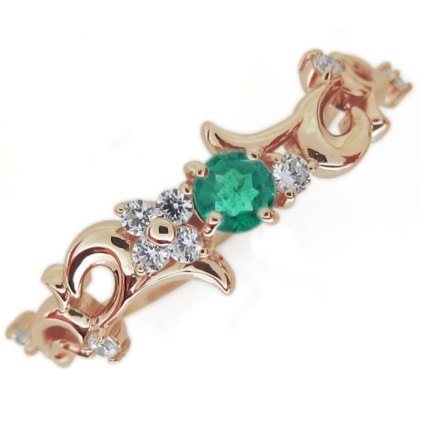 5月誕生石エメラルドを使用した10金製の唐草(アラベスク)デザインリング(指輪)です。