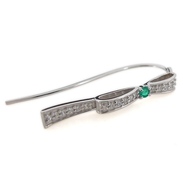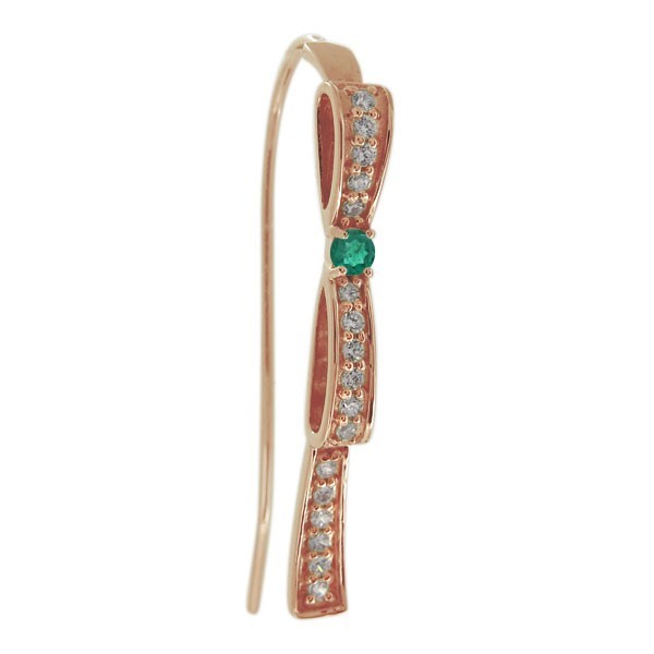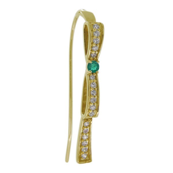 リボン ピアス レディース 10金 エメラルド 5月誕生石 りぼん 片耳 フックピアス