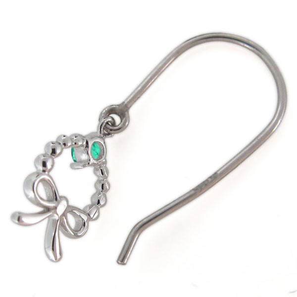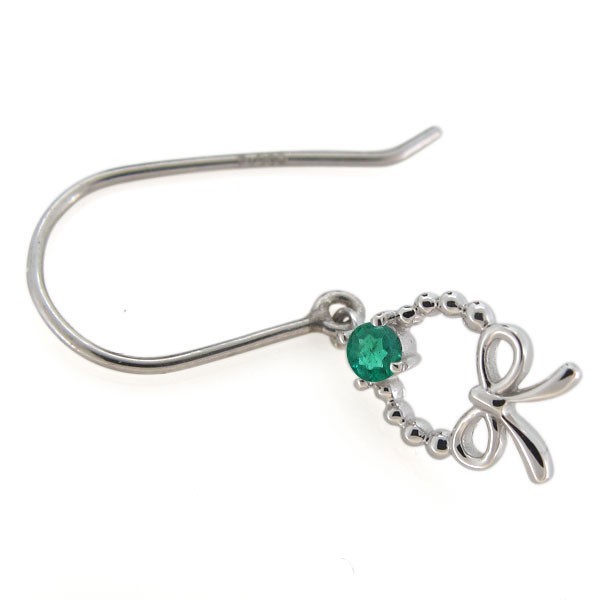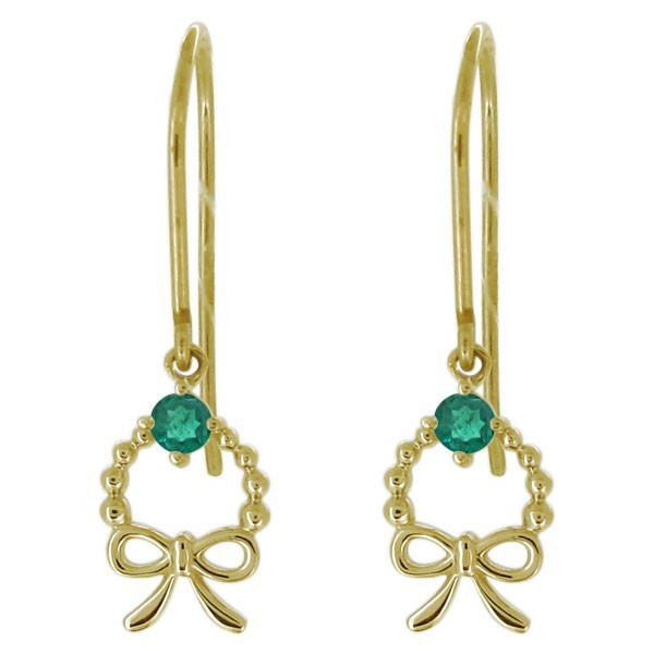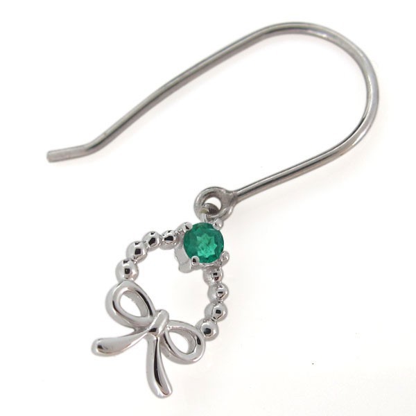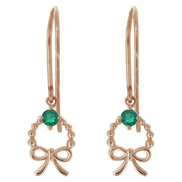 レディースピアス エメラルド 5月誕生石 りぼん フック 18金