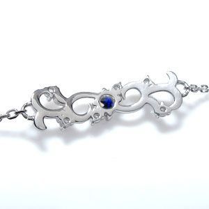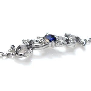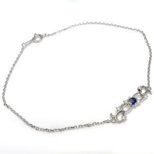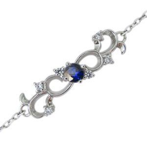 9月誕生石サファイアを一粒使用した、プラチナ製のアラベスクデザインブレスレットです。