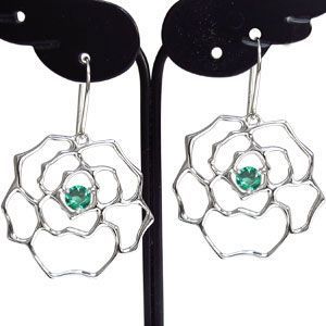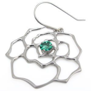 薔薇 ピアス エメラルド 一粒 K18 ピアス