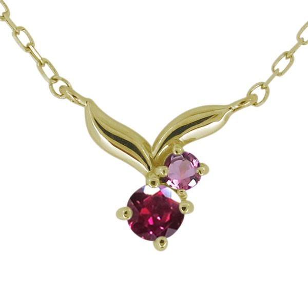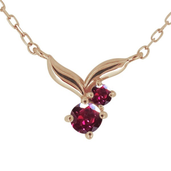 7月誕生石ルビーを使用した10金製の、リーフ(葉っぱ)モチーフレディースネックレス(ペンダント)です。