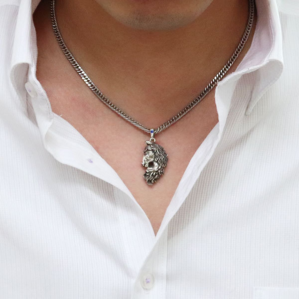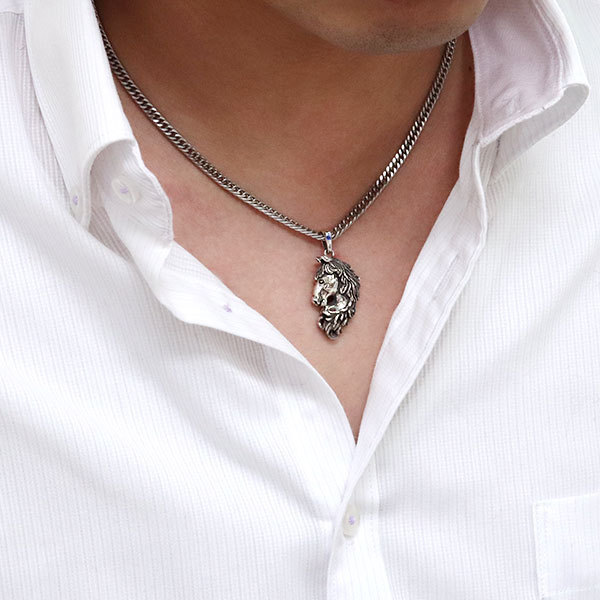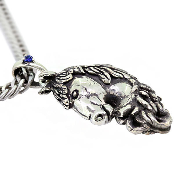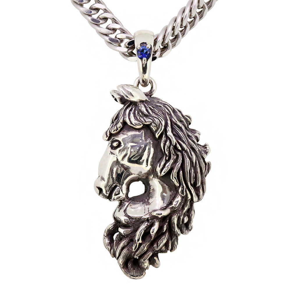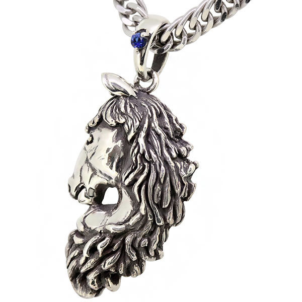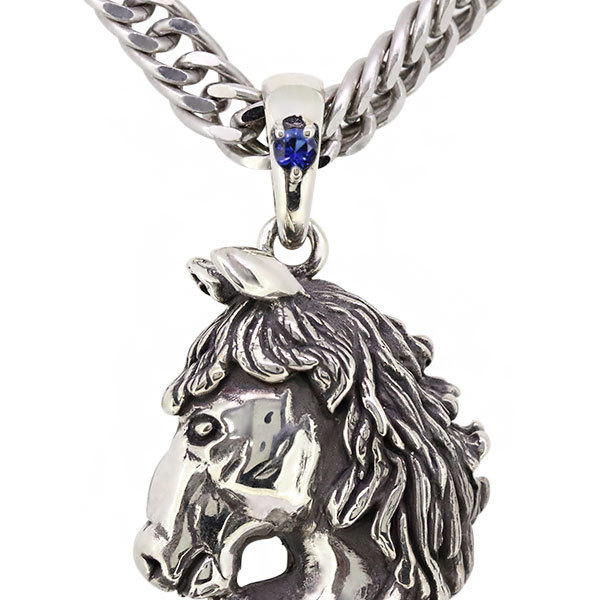 シルバー925 喜平ネックレス メンズ 馬 誕生石 9月 サファイア うま