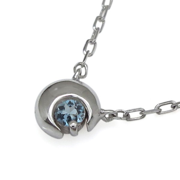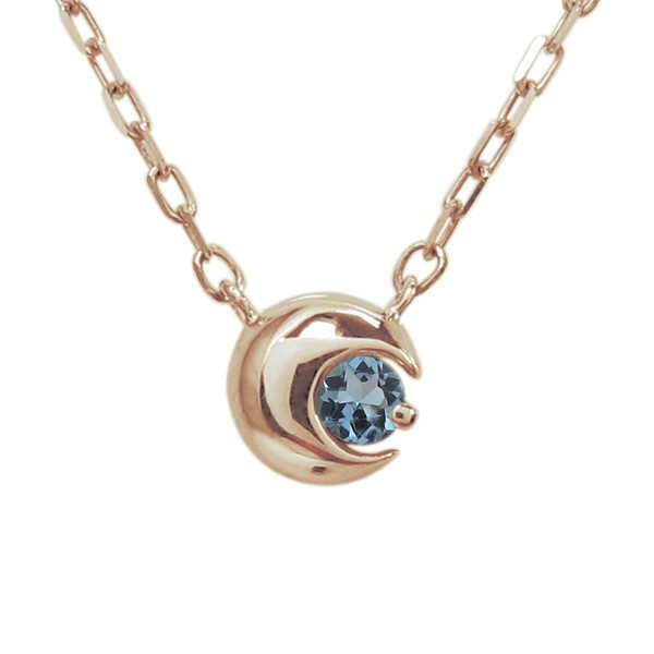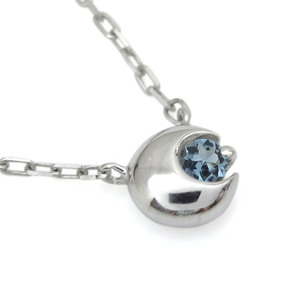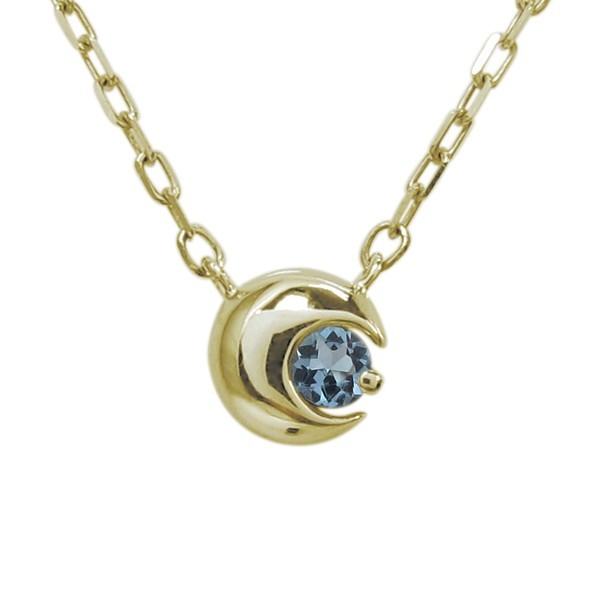3月誕生石アクアマリンサンタマリアを一粒使用した、三日月(ムーン)をモチーフにした、18金製プチネックレスペンダントです。