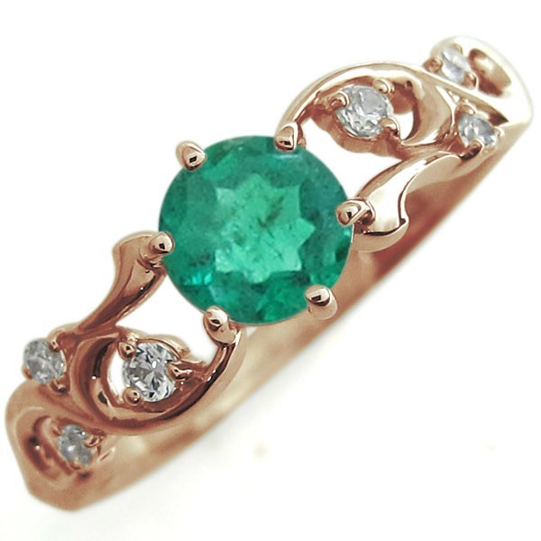 5月誕生石エメラルドを一粒使用した、18金製の唐草デザインリング(指輪)です。