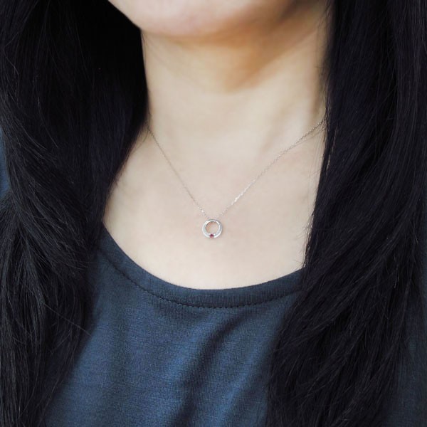 7月誕生石ルビーを一粒使用した、シルバー製のベビーリング(ネックレス)です。