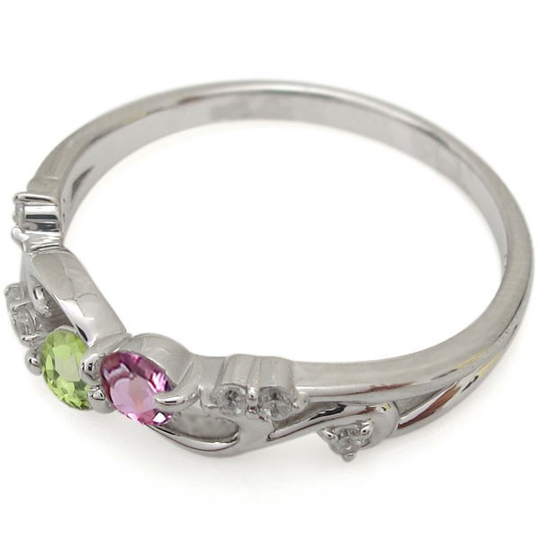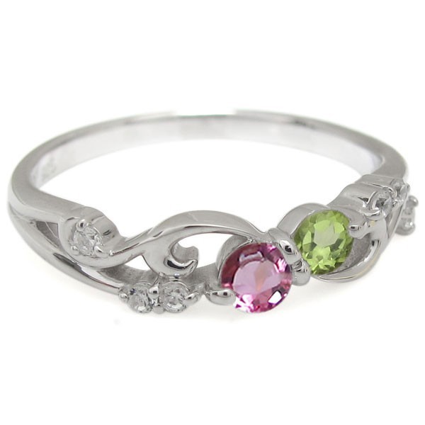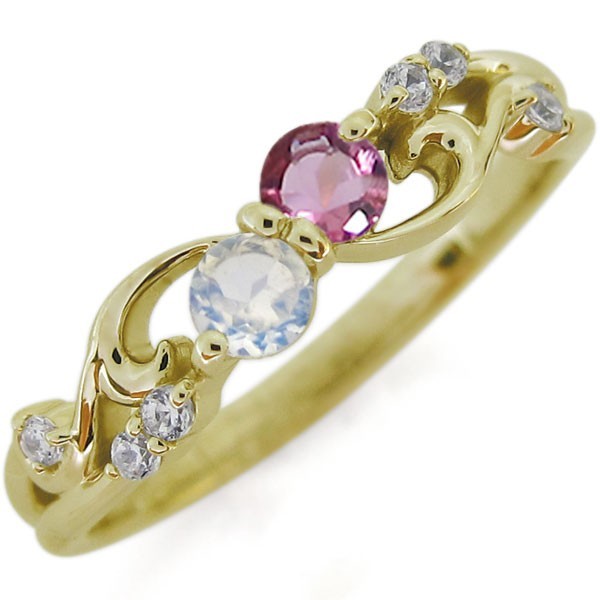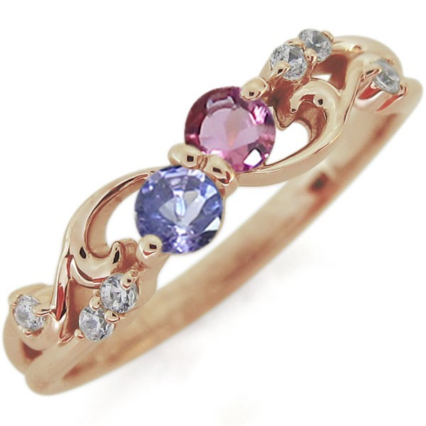■石名:主石 (A)ピンクトルマリン(約3.0mm 天然石使用)(B)誕生石12石から選択可(約3.0mm 天然石使用)脇石 ダイヤモンド(6石合計で約0.06ct 天然石使用)