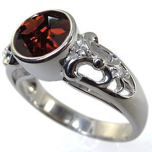 ■石名: 主石:ガーネット(約 8.0mm/天然石使用)脇石:ダイアモンド(合計4石で約 0.04ct/天然石使用)