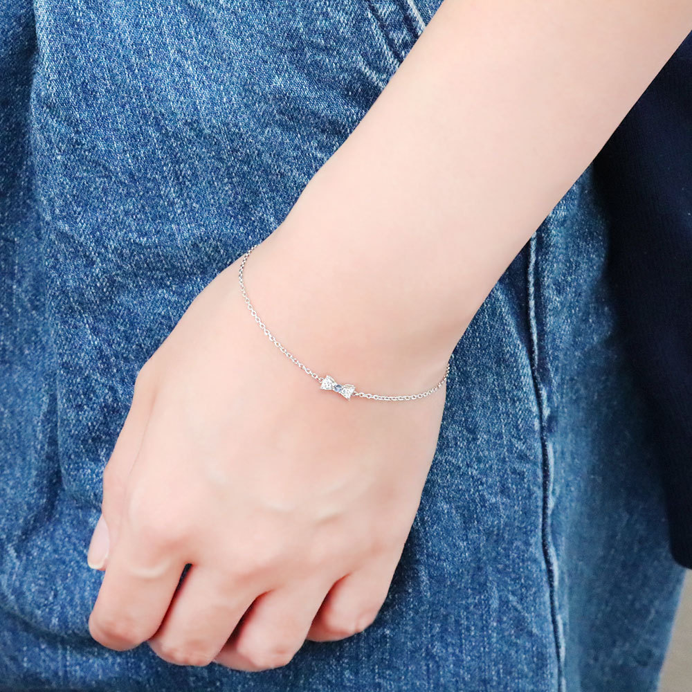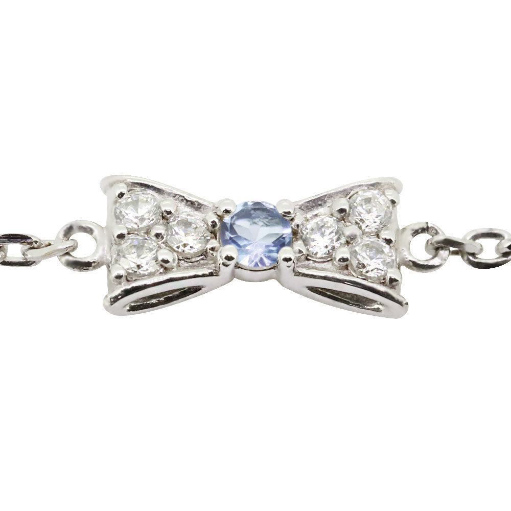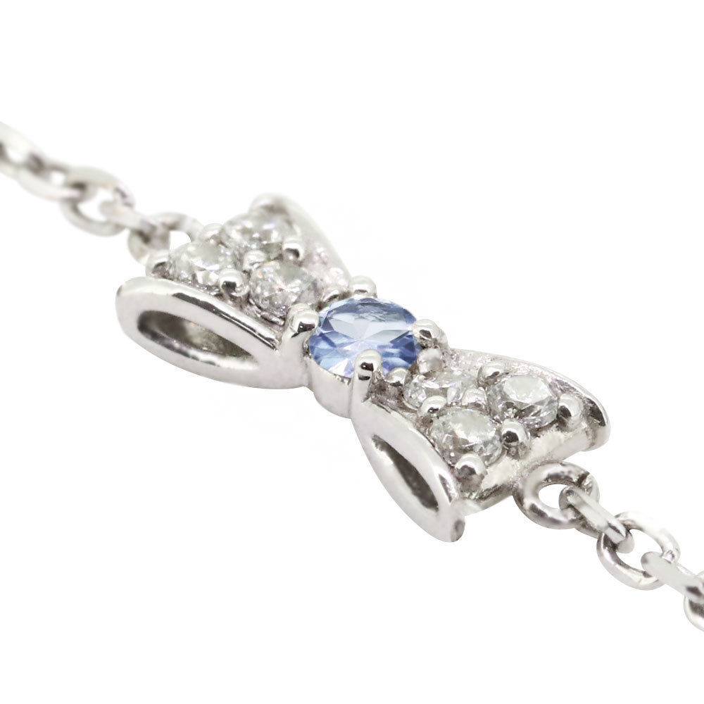 ふんわりとした優しいフォルムのリボンに一粒の誕生石とダイヤモンドが美しく輝きます。