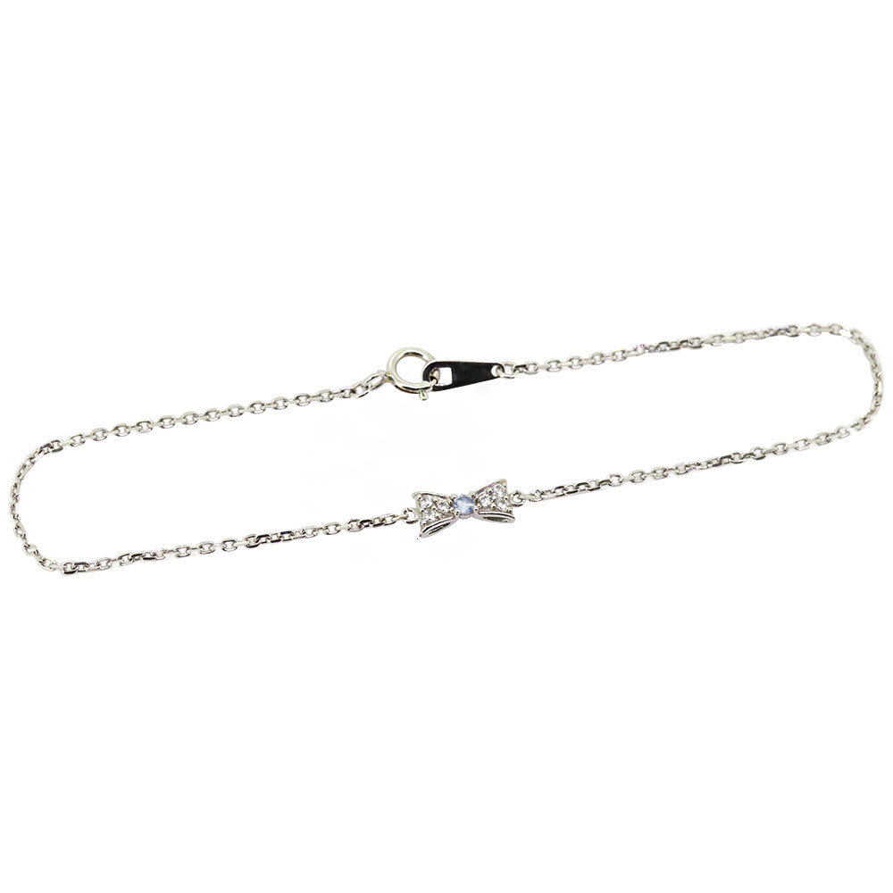 3月誕生石アクアマリンサンタマリアを使用した18金製の、リボンモチーフのブレスレットです。