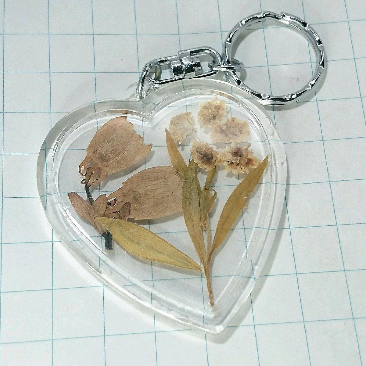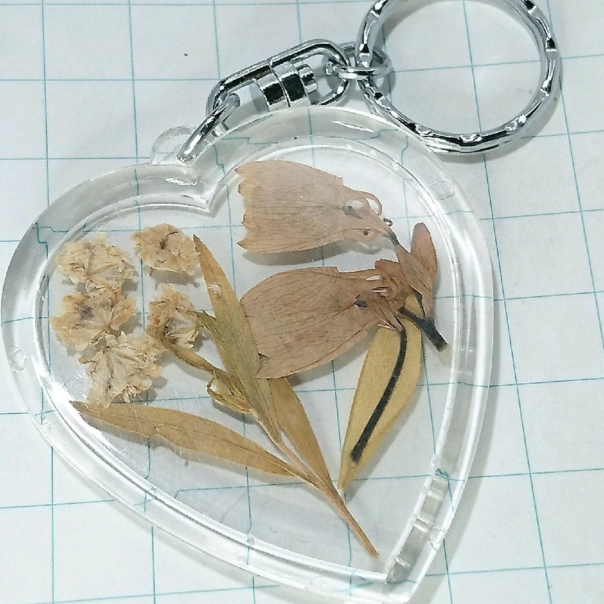 送料無料)押し花 ハート 昭和レトロ 観光地 登山 山登り 旅行 記念 キーホルダ A11063