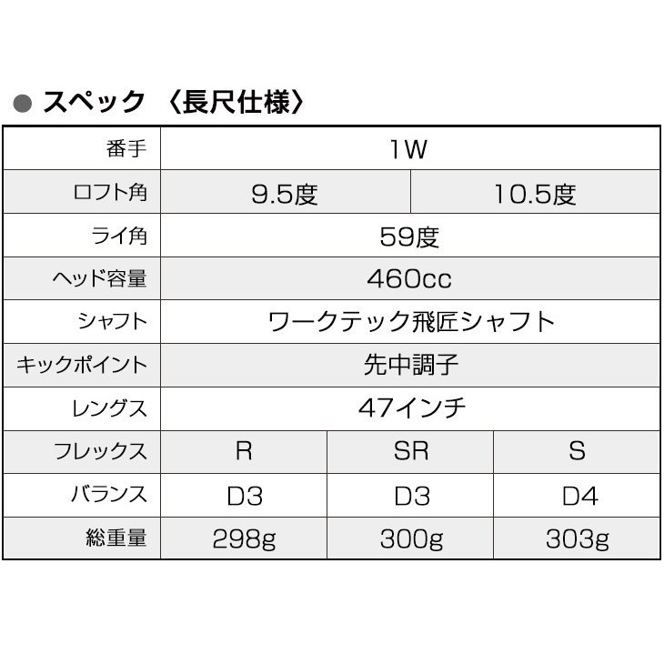 【新品】長尺 47インチ 高反発 ワークス ゴルフ HBガンマ ブラックプレミアMax1.7 9.5 10.5 R / SR / S ワークテック飛匠シャフト仕様