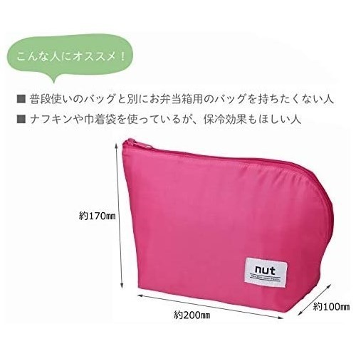 OSK 弁当箱入れ ランチポーチ ナッツ ピンク [約20x17xマチ10cm/出し入れしやすい/保冷効果/バッグインバッグ] ZZ-11
