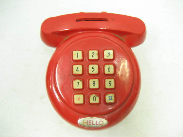 レトロ TOKAI トーカイ 丸型プッシュホン バンク 貯金箱 電話型 陶器 赤 レッド