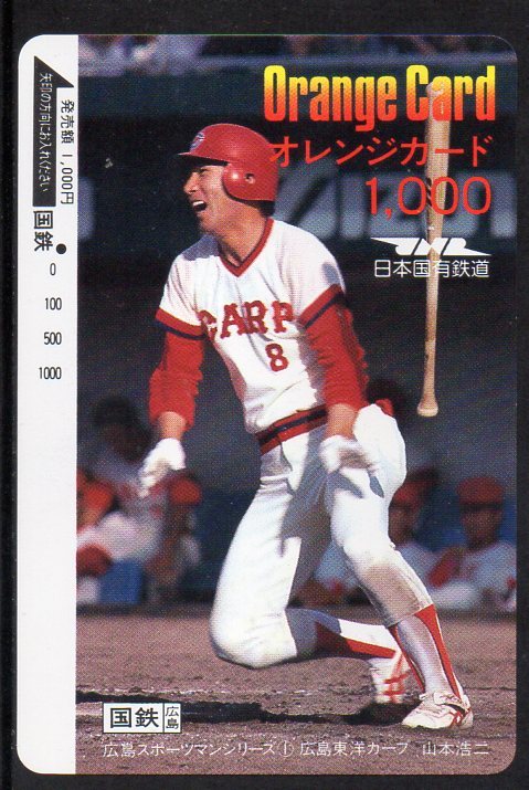 使用済 山本浩二 広島東洋カープ 国鉄 オレンジカード 1つ穴