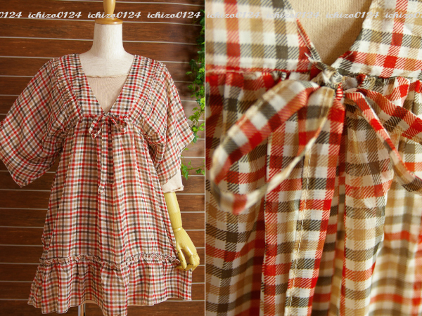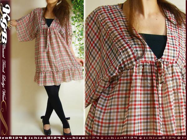 ★チェック柄のシフォンワンピース。 重ね着しても使えるので、ロングシーズン着ていただけます♪