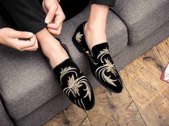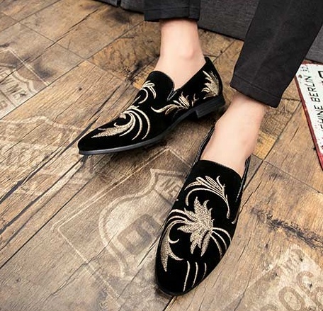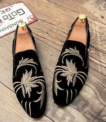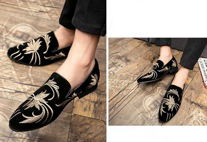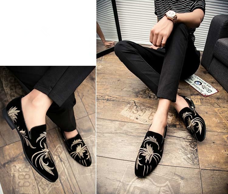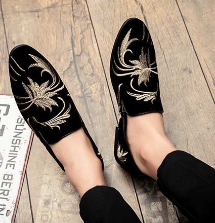 ★新品★メンズ TL71280-24.5cm/39 スリッポン ローファー カジュアル ブラック 個性 刺繍入り