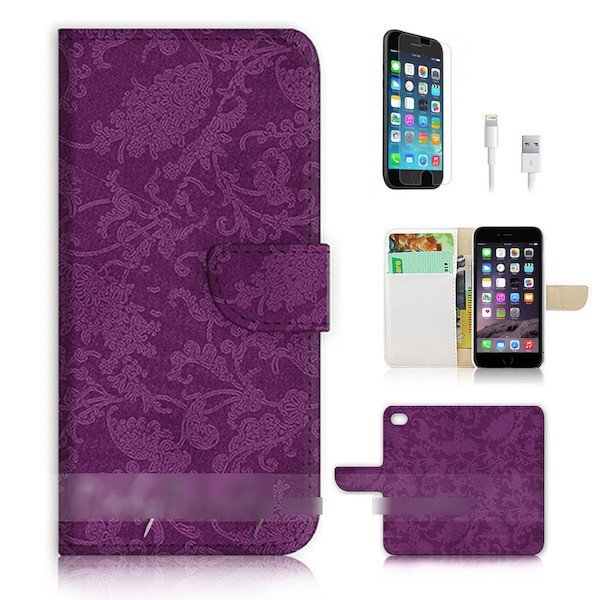iPhone7ダマスク柄 スマホケース 充電ケーブル フィルム付