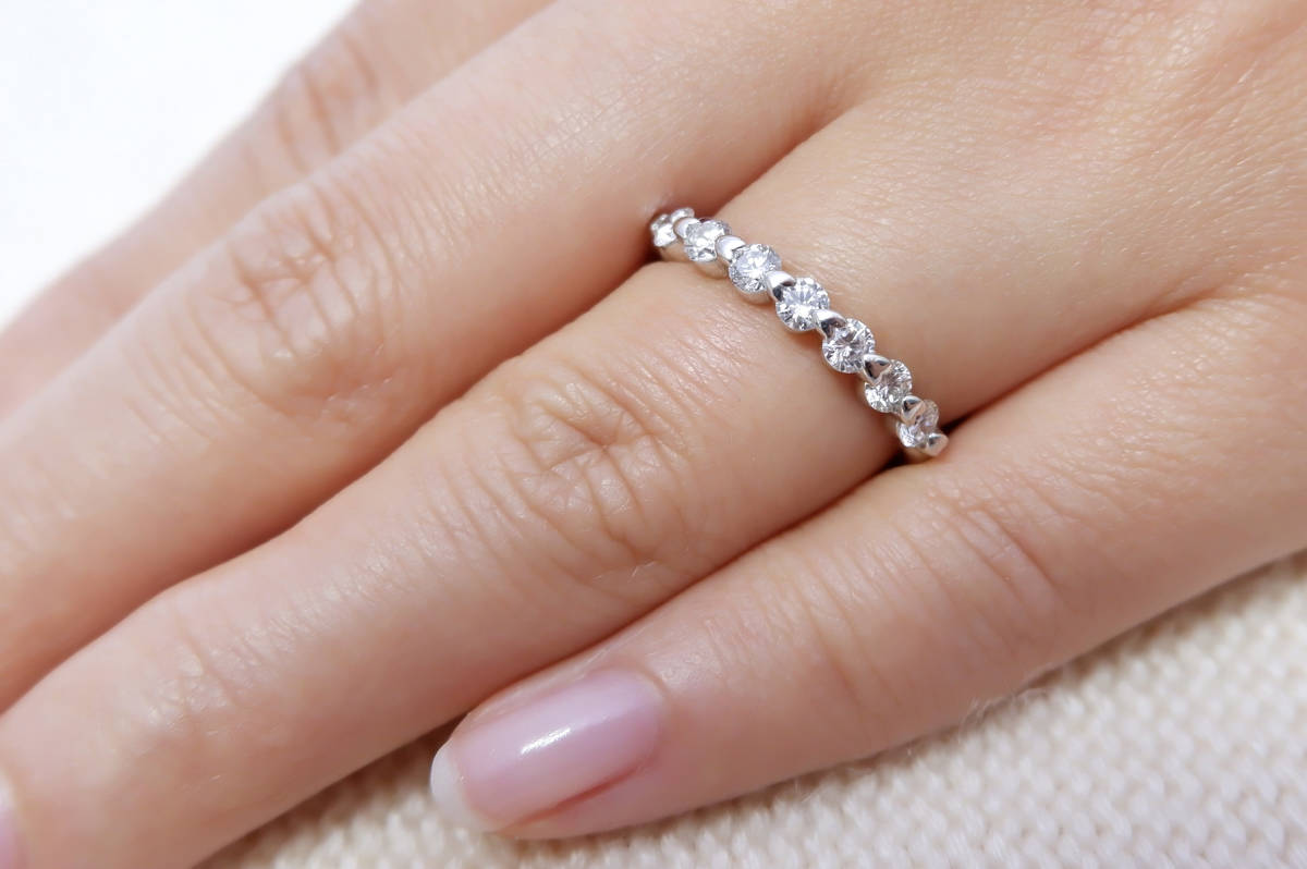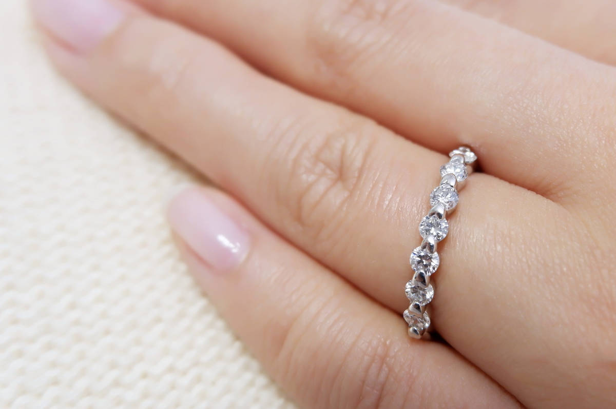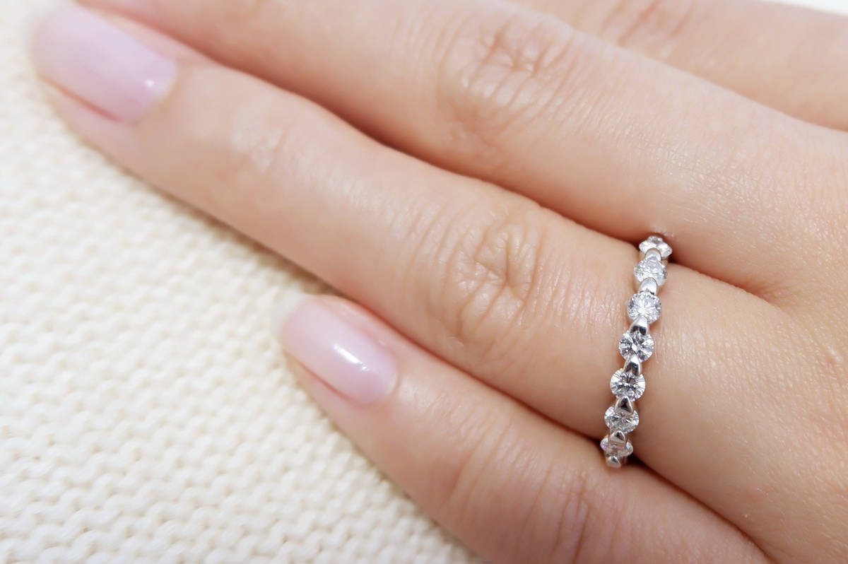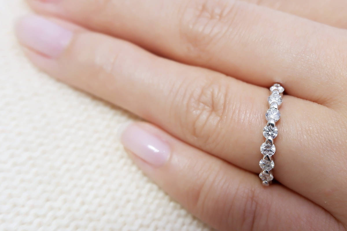上質なダイヤモンドが7石並び、綺麗な輝きを放ちます。