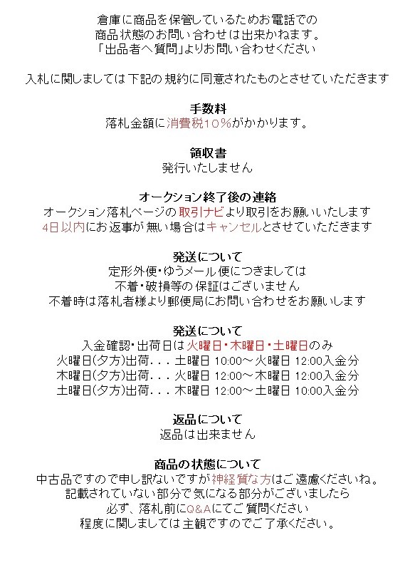 Ⅵ.弃标也必须全额支付该拍品(成交价+消费税+银行转账费+日本邮费+代购费)。
