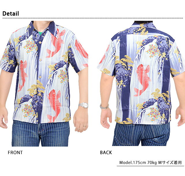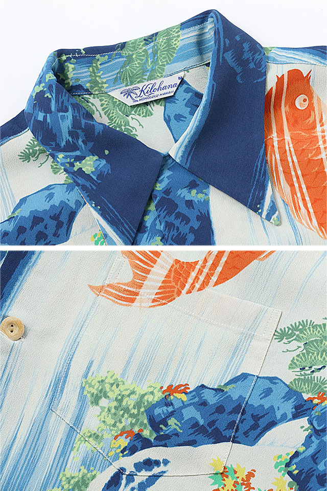 アロハシャツの黄金時代とされる1930~50年代にかけて作られた「ヴィンテージ」と呼ばれる貴重なアロハシャツを再現し、現代に蘇らせているブランド「SUN SURF」から、レーヨンアロハシャツ SPECIAL EDITION「CARP」(SS38868)のご紹介です。 ハワイにおける日系移民の歴史は、想像以上に厳しい環境からスタートしました。 中でもこの「鯉の滝登り」ように立身出世や家運隆盛を意味する縁起の良いデザインは、観光客のみならず現地の日系移民からも絶大な人気があり、ハワイと日本の繋がりを象徴する存在となっていました。 現代においても世界中のコレクターを魅了するこの作品。 ボディーには、てろんとした肌触りのなめらかなレーヨン壁縮緬生地を使用。 アロハシャツは、生産も非常に少なく、レアなアイテムとなっています。 | ||||||||||||||||||||||||||||||