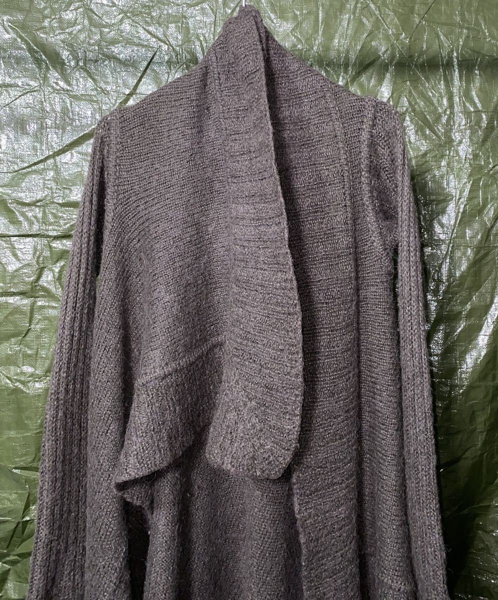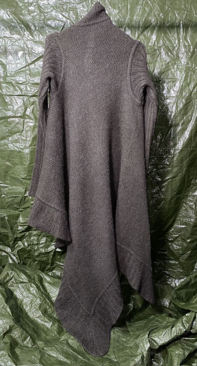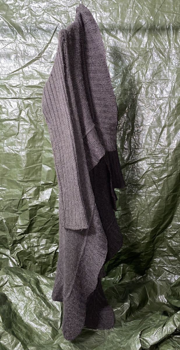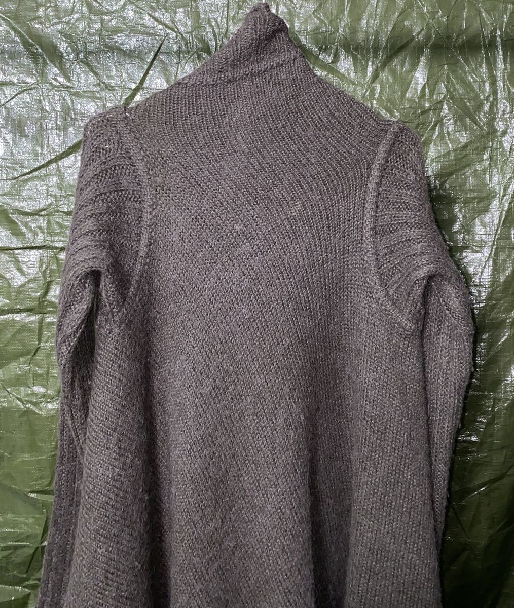 巧みなパターン操作によりニットウェアでありながら風になびいたような立体感のあるシルエットが美しい1着。レザー類に負けず劣らずニットデザインにおいてもかつてのイッセイミヤケやジョセフがそうであったように1990年台後半から2000年台にかけて時代を代表するスタイルを作り上げました。彼の名を世に知らしめしたレザージャケット類のヒットの要因も内袖をニットに切り替えたデザインによる快適性があったからこそ。