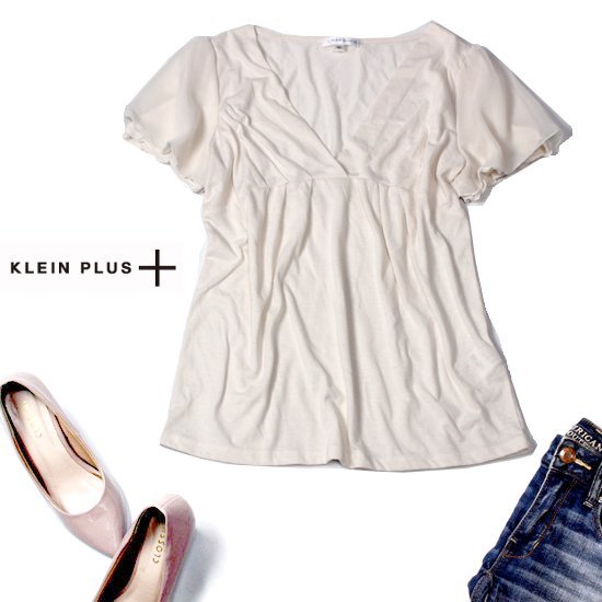 ☆☆ 美品 イトキン (株) KLEIN PLUS+ クランプリュス ☆☆ 可愛いシフォン切り替え タック・ストレッチカットソー 40号 L 春 夏 22A08