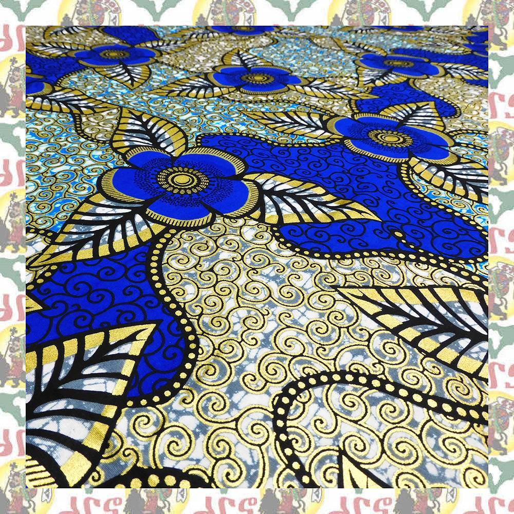 【SALE/180cm x 110cm/2ヤード】アフリカンプリント生地 barg-j70 アフリカ布 アフリカ生地 ゴールドプリント アンカラ キテンゲ パーニュ