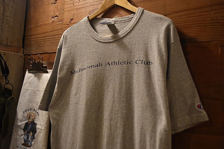 グッドアイテムUSA製90sビンテージChampionチャンピオン半袖プリントTシャツLグレー灰色アメカジストリートスポーツ アメリカ製nt5919