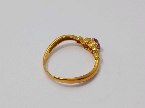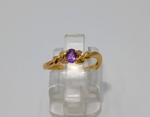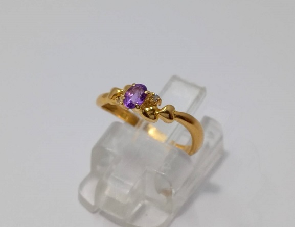 K18 YG 1.5g アメジスト 1個 ダイヤ 2個 リング 7.5号
