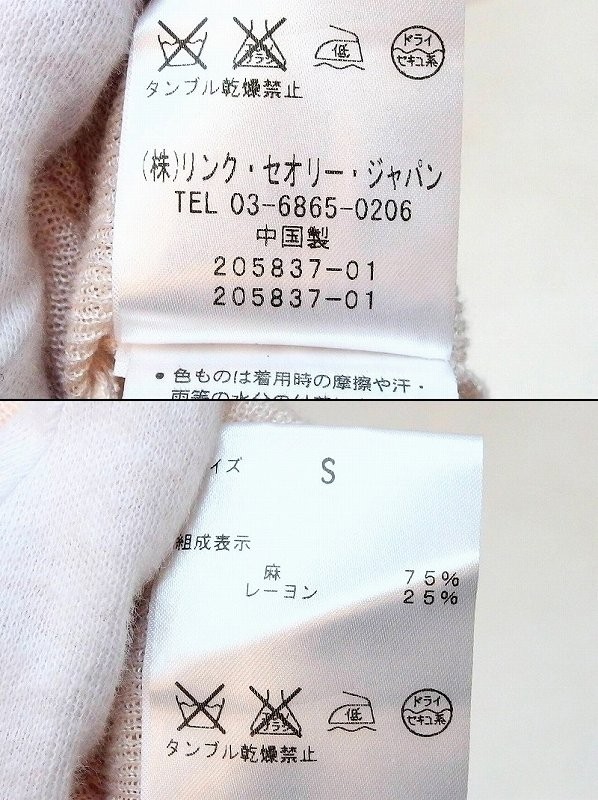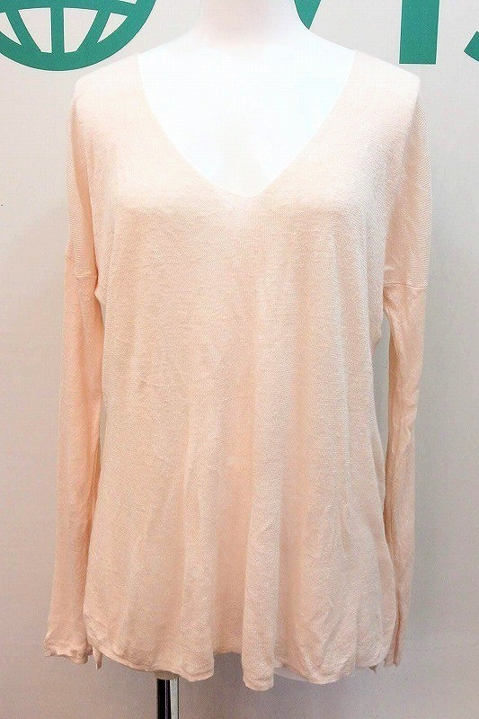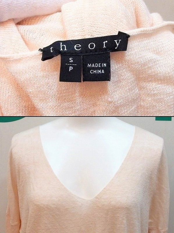 theory セオリー Vネック リネン混 サマーセーター S/P オフピンク