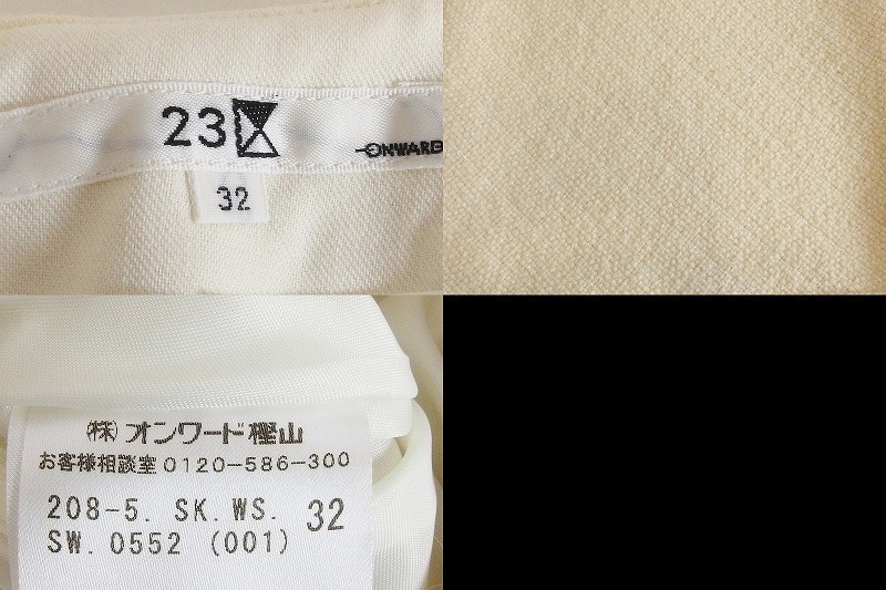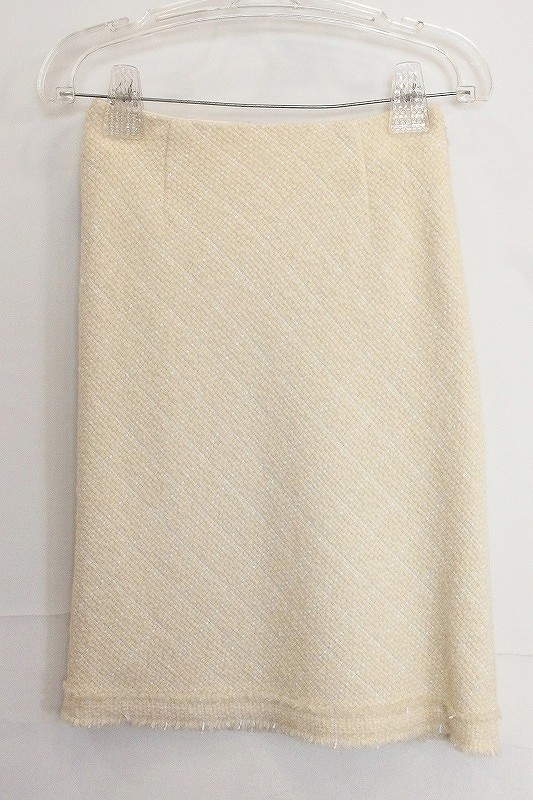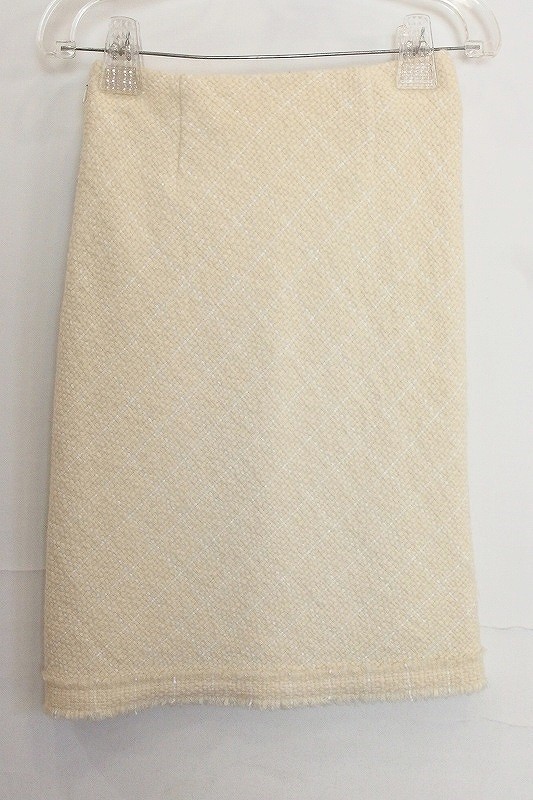 23区 ニジュウサンク ツイード ウール ひざ丈スカート ラメ 32(7号相当) アイボリー