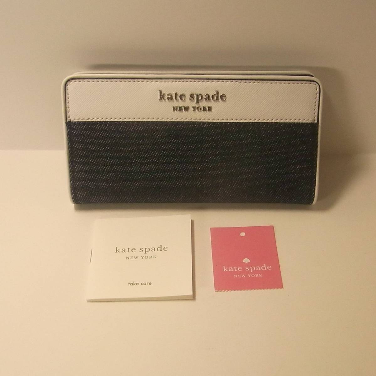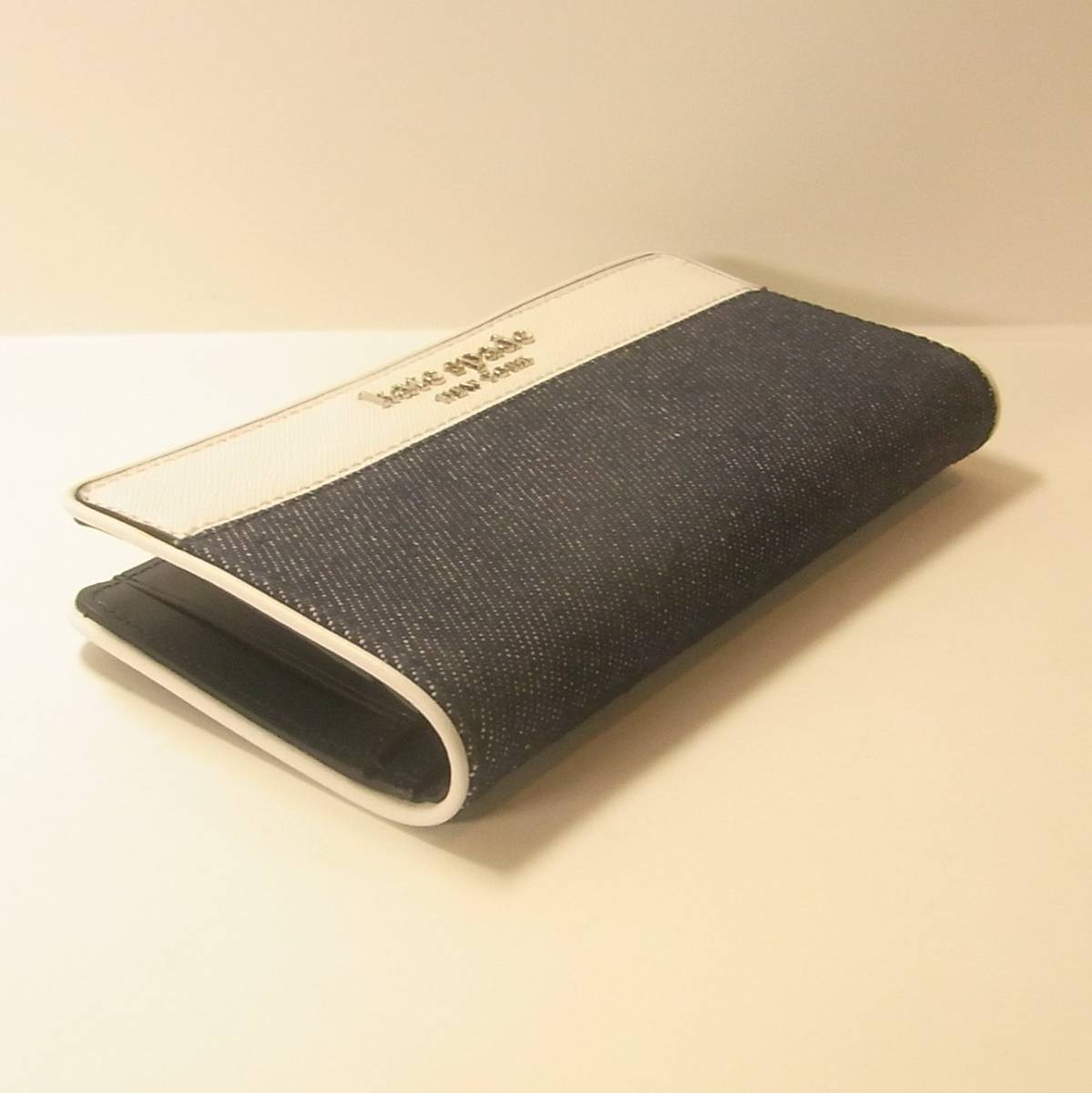 美品 Kate spade ケイトスペード 長財布 デニム×レザー ネイビー×ホワイト